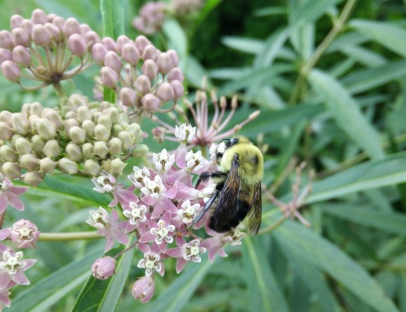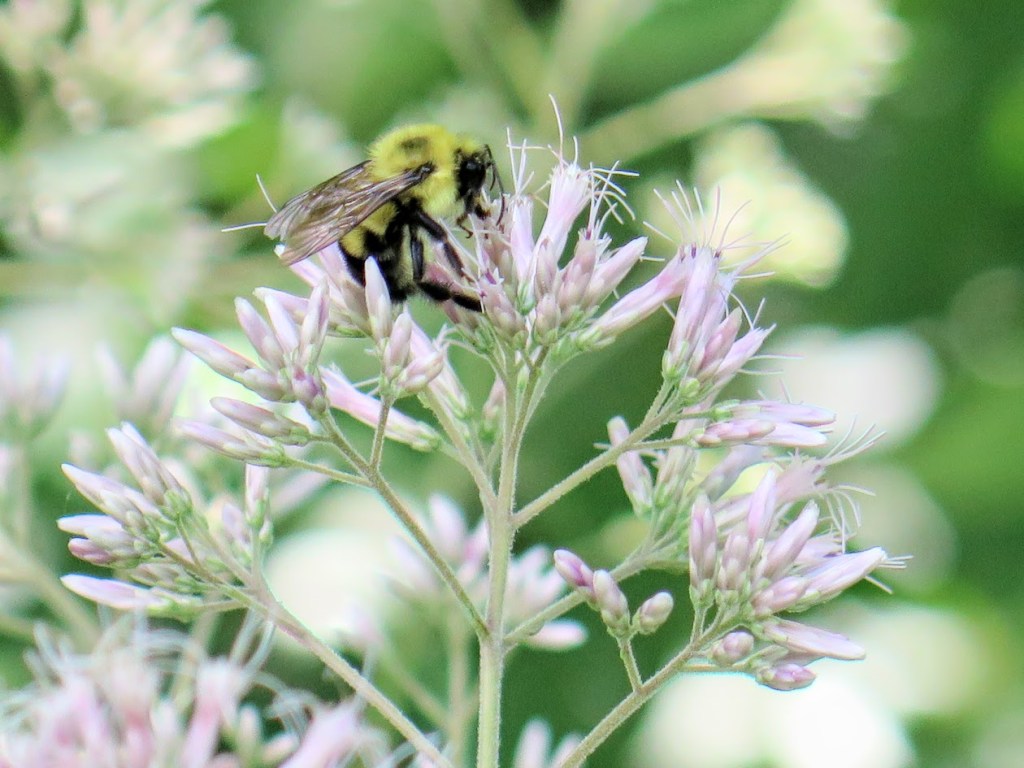 Bumblebees love Joe Pye weed. Spotted Joe Pye weed (Eutrochium maculatum) is a favorite of the endangered rusty patched bumblebee. If you ever spot one on your Joe Pye,weed, please report it to http://www.bumblebeewatch.org