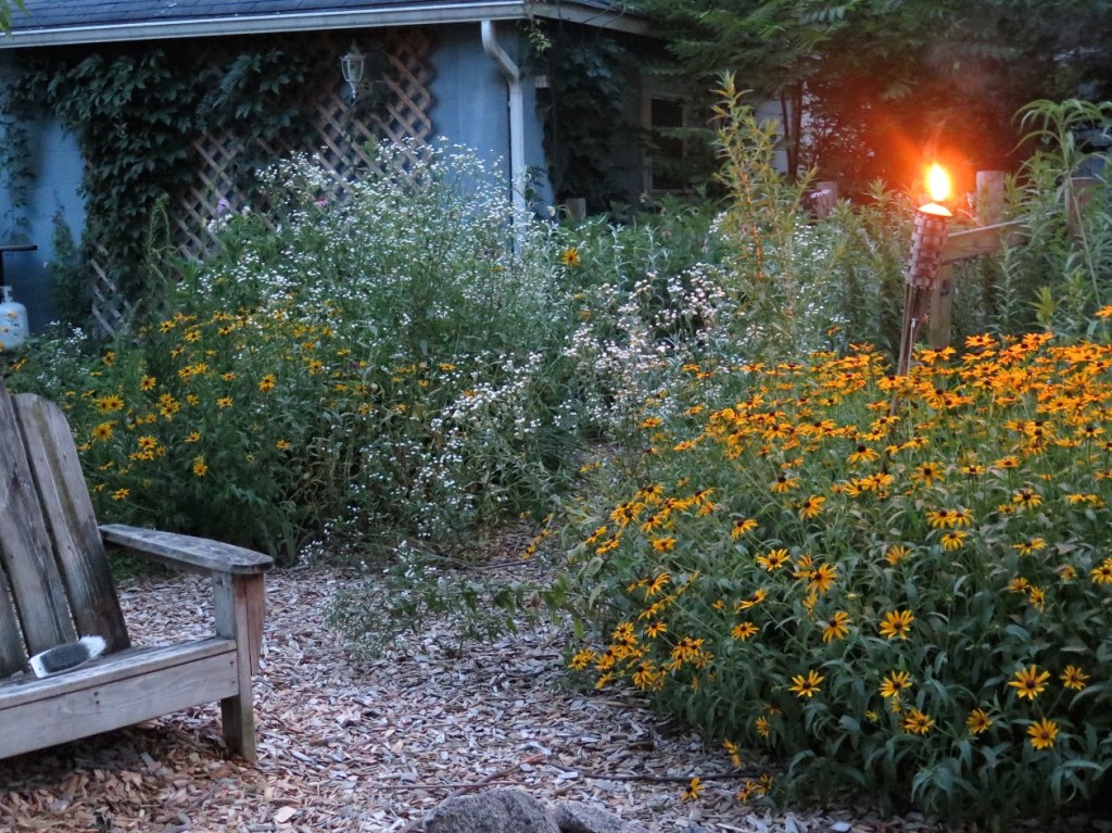 It’s a two sweater night in Iowa.  It never occurred to me to wear two wool sweaters before, but it seems to be the right level of sweaters these days. After many months of being home, with all the staying put and winter, it seems some beliefs have really sunk in, like rocks in the garden.  One thing I believe these days, is that, in a native garden, the flowers, leaves, and garden design are just the very beginning of the beauty.  If you’ve ever sat out with a Joe Pye weed on an afternoon, you probably know what I mean.