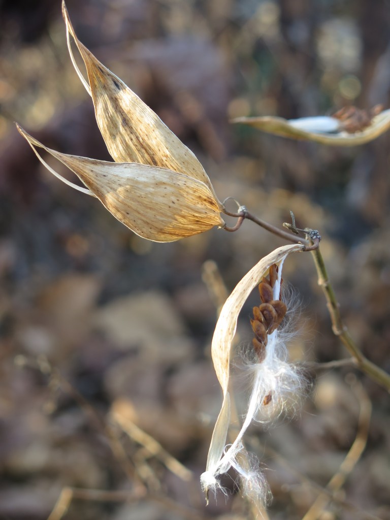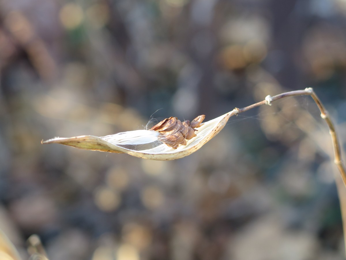 Dried butterflyweed (Asclepias tuberosa)seed pods in winter.