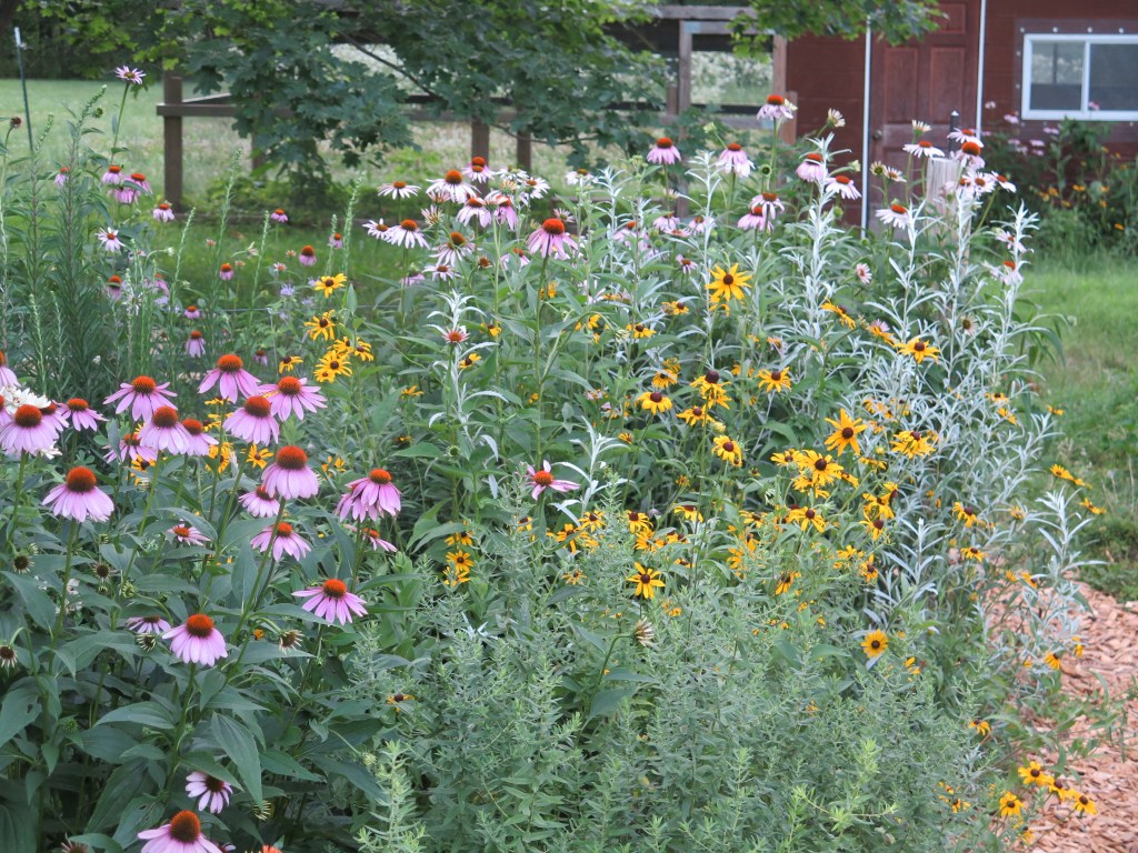 Purple coneflower, prairie sage, and black-eyed Susans. One of my favorite spots in the garden.